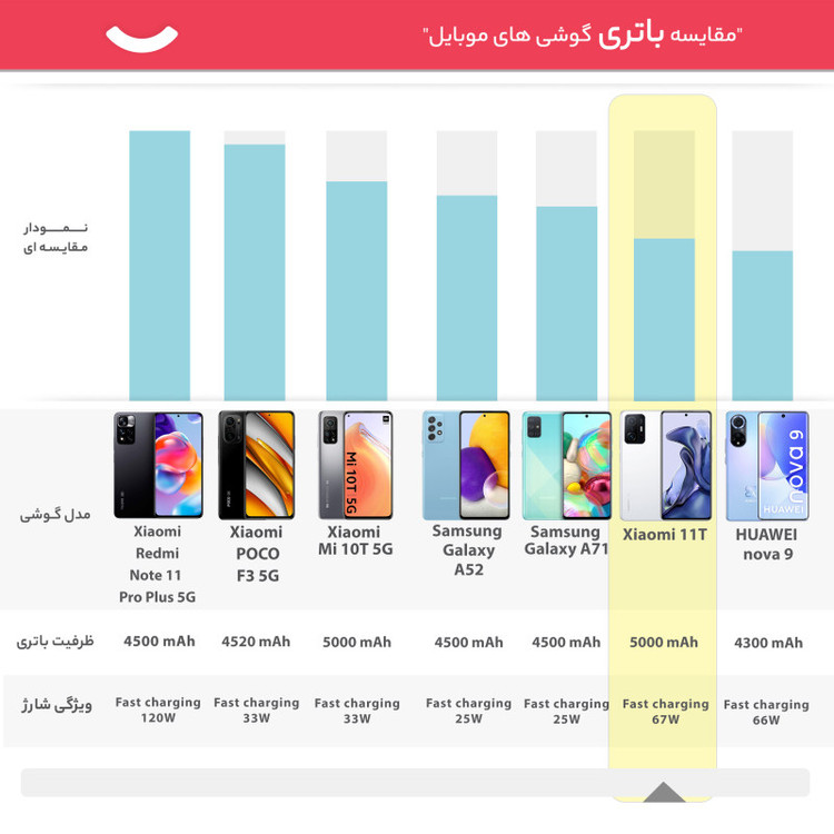 مشخصات باتری : باتری از نوع لیتیوم-پلیمر با میزان ظرفیت 5000 میلیآمپرساعت